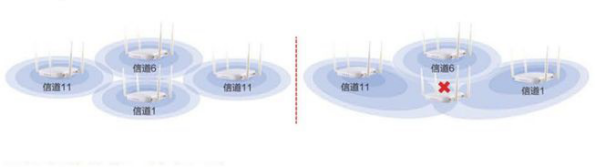 無線 AP 可自動調整信道和信號發(fā)射功率,避免信號干擾,當某一 AP 出現(xiàn)故障停止工作的時候,周圍 AP 將自動提升發(fā)射功率并變換信道,確保信號覆蓋范圍以及終端連接穩(wěn)定;